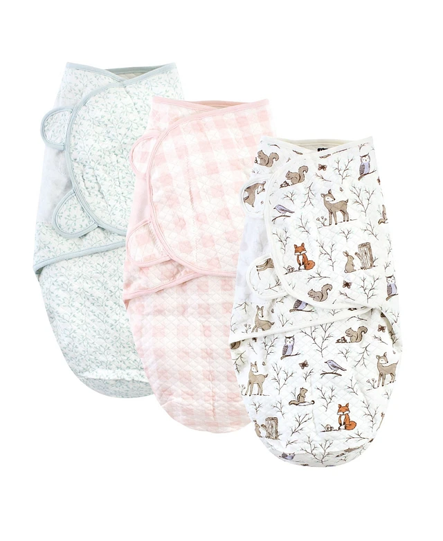 Hudson Baby Girls Quilted Cotton Swaddle Wrap 3pk, Winter Forest, 0-3 Months