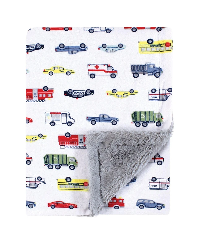 Hudson Baby Plush Blanket with Furry Binding and Back, Going Places, One Size