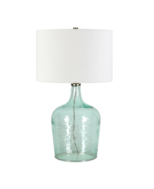 Simple Designs Glass Table Lamp with Fabric Shade, Green with White Shade