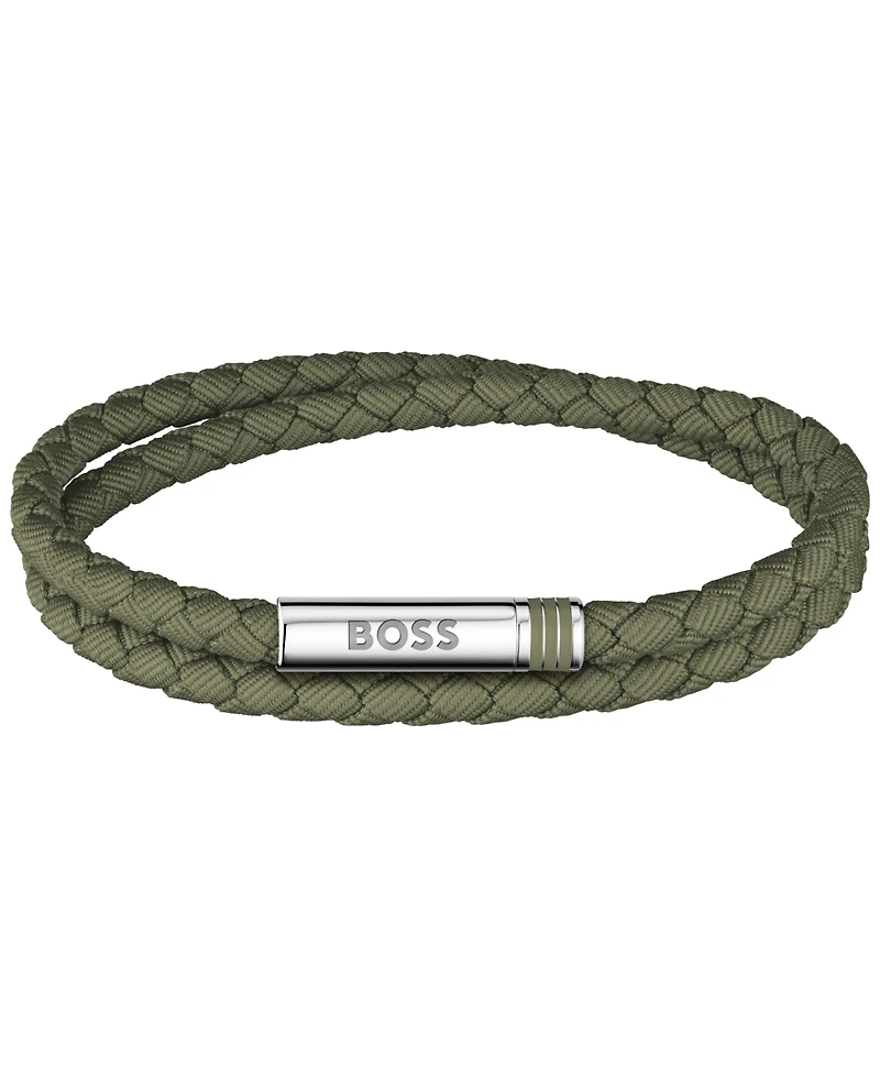 Hugo Boss Men Ares Summer Stainless Steel Green Nylon Cord Bracelet