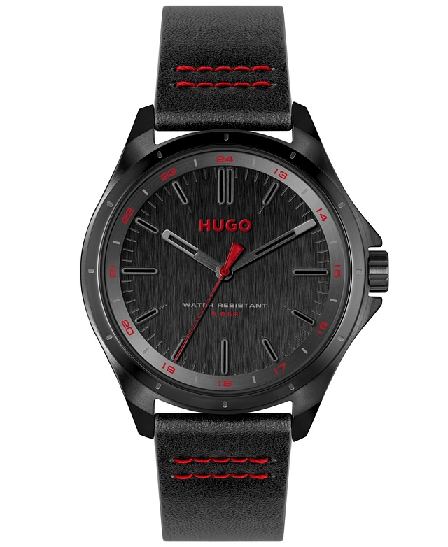 Hugo Boss Men's Complete Quartz Black Leather Watch 42mm