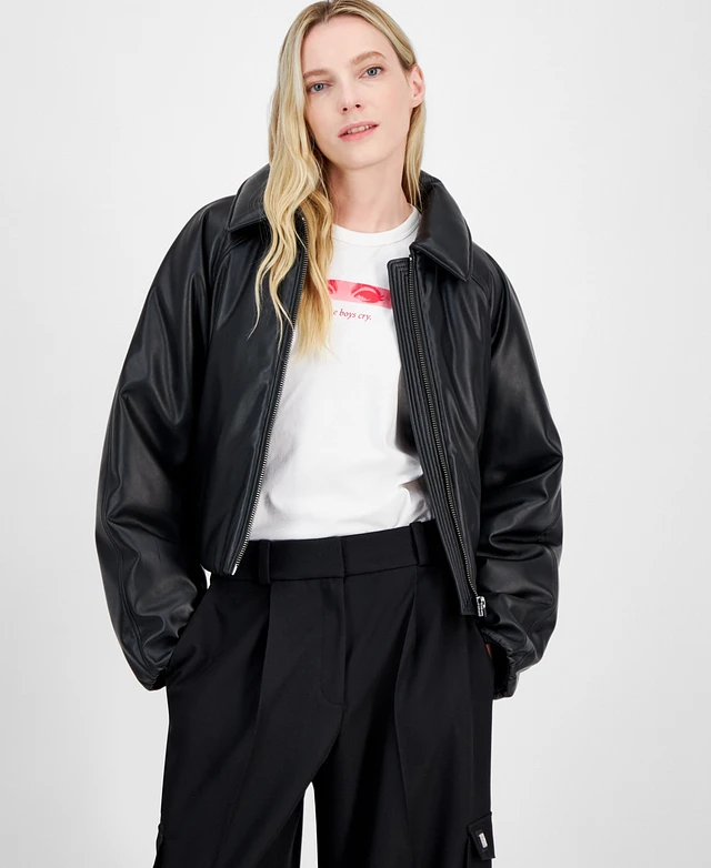 Hugo Women's Cotton Relaxed-Fit Cropped Denim Jacket