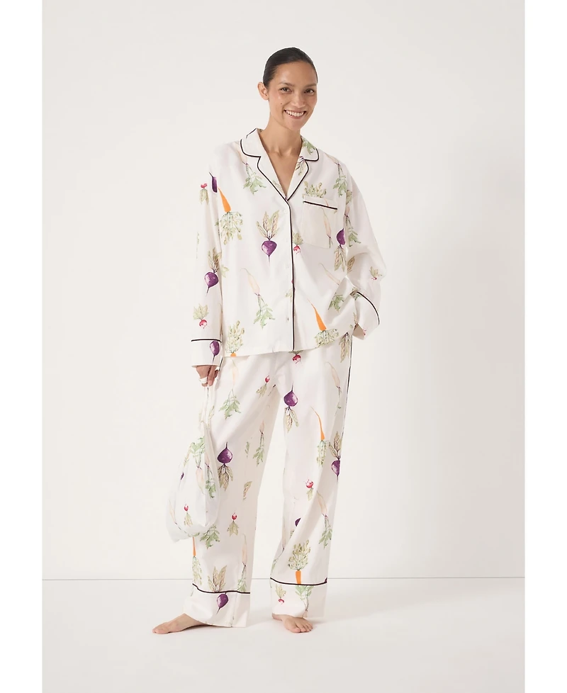 Enjoy a cozy night's sleep in premium brushed cotton pyjamas featuring a delightful vegetable print and comfortable regular fit.
