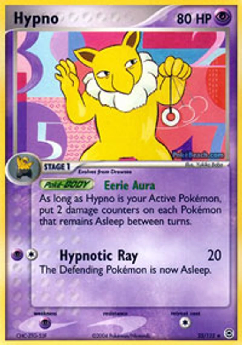 Set: EX FireRed & LeafGreen Card Number: 25 Rarity: Rare Illustrator: Yukiko Baba Retreat Cost: 1 Weakness: HP: 80 Stage: Stage 1 Card Type: Psychic Name: Hypno Finish: Regular Manufacturer: The Pokemon Company