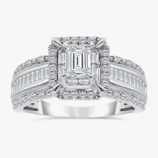 (I / I1) Womens 1 CT. T.W. Lab Grown White Diamond 10K Gold Side Stone Halo Engagement Ring