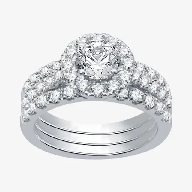 (I / Si2) Womens 2 3/4 CT. T.W. Lab Grown White Diamond 10K Gold Round Side Stone Halo Bridal Set