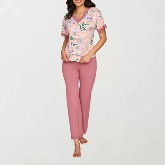 Ilusion Womens Round Neck Short Sleeve 2-pc. Pajama Sets