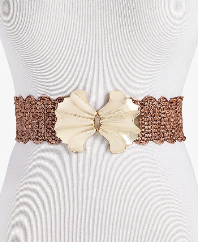 I.n.c. International Concepts Abstract Shell Buckle Stretch Straw Belt, Exclusively at Macy's