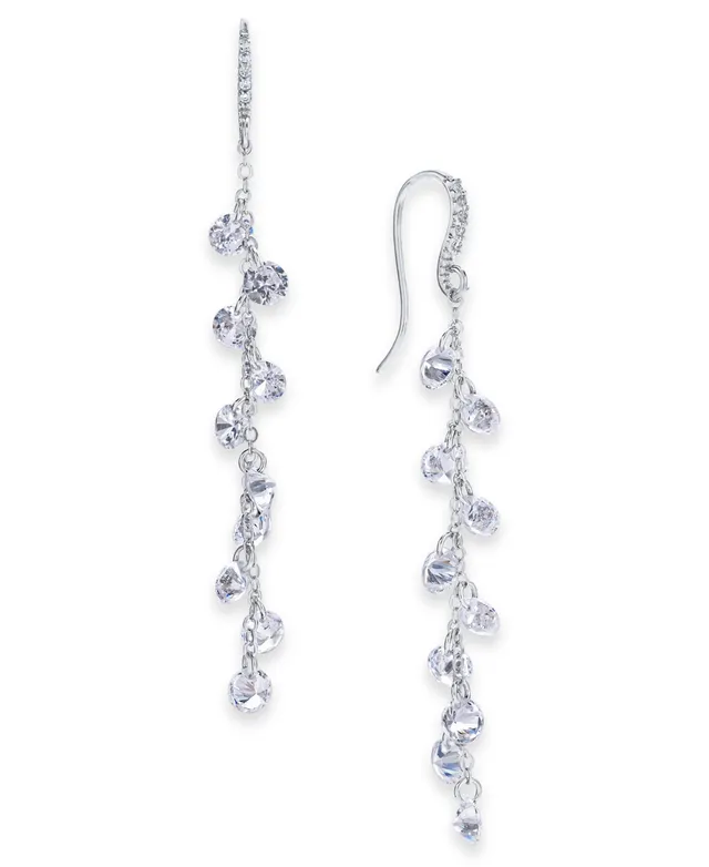 Eliot Danori Silver-Tone Cubic Zirconia Graduated Linear Drop Earrings, Created for Macy's