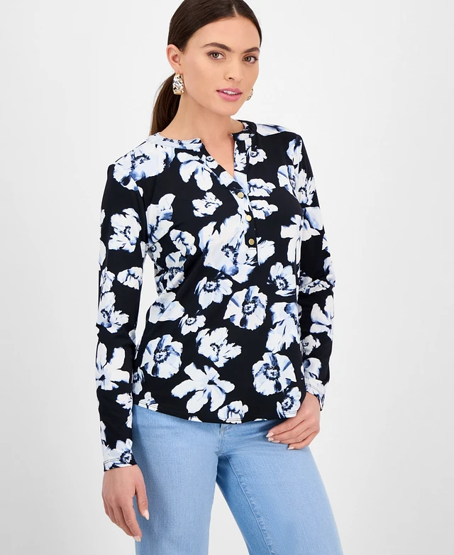 I.n.c. International Concepts Petite Floral Button-Placket Top, Exclusively at Macy's