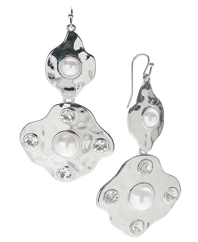 I.n.c. International Concepts Rhodium-Plated Pave & imitation Pearl Statement Earrings, Exclusively at Macy's