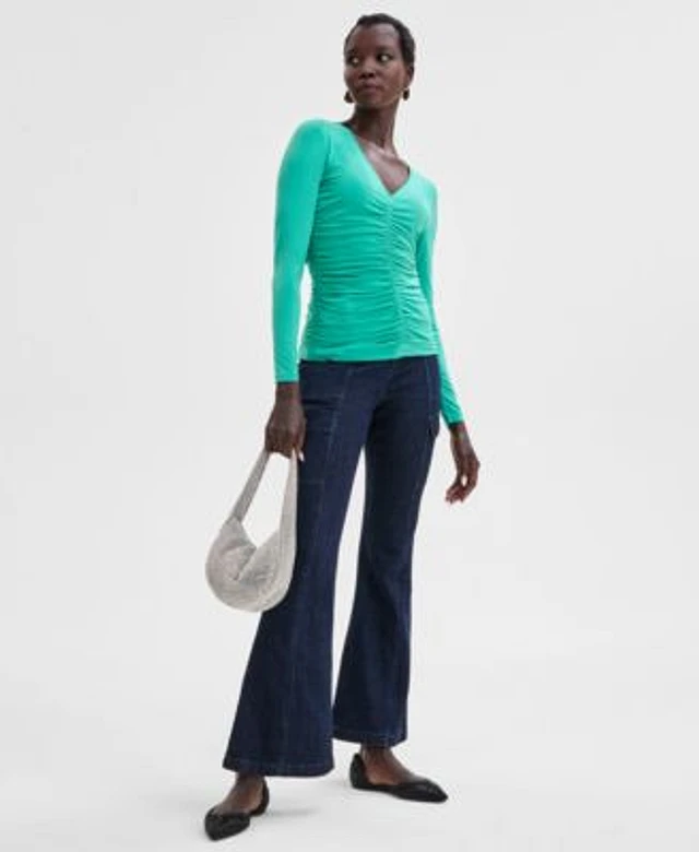 I.N.C. International Concepts Ruched Long Sleeve Top Flared Leg Jeans Mesh Hobo Bag Hardware Detail Flats Exclusively At Macys