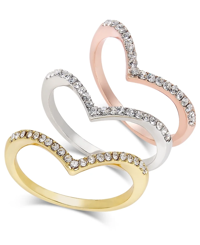 I.n.c. International Concepts Tri-Tone 3-Pc Set Crystal Chevron Stackable Rings, Created for Macy's
