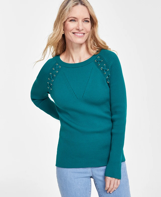 I.n.c. International Concepts Women's Lace-Up Ribbed-Knit Sweater, Created for Macy's