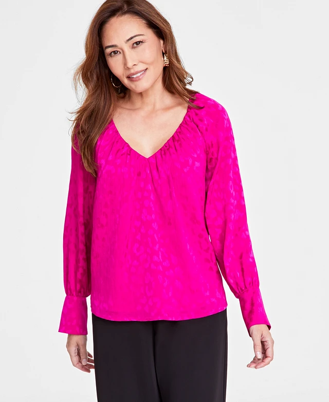 Anne Klein Women's Animal-Print Pleated V-Neck Blouse