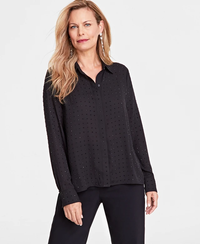 I.n.c. International Concepts Women's Rhinestone Button-Front Blouse, Created for Macy's