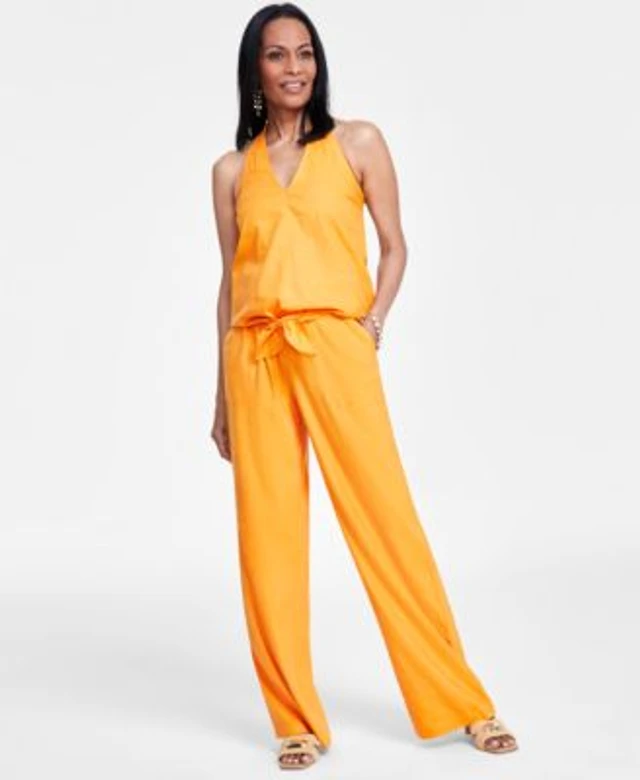 I.N.C. International Concepts Womens Tie Front Halter Blouse Paperbag Waist Pants Created For Macys
