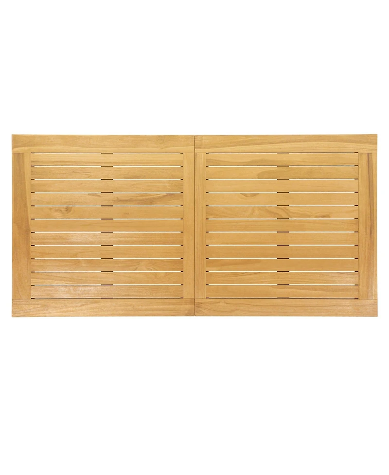 Upgrade your space with this indoor-outdoor teak wood tabletop panel, split into two square sections for versatile use. Featuring a slatted design for airflow and water drainage, this durable teak wood panel is perfect for custom tables, benches, or Diy projects. Its natural finish enhances any setting, from patios and gardens to dining areas and work spaces. Designed for durability and adaptability, this panel set offers both function and style for a variety of indoor and outdoor applications.