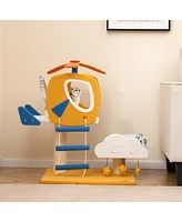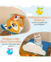 Indoor Small Aviation-Themed Cat Tree with Helicopter Top Perch Fun & Cozy Playhouse for Cats