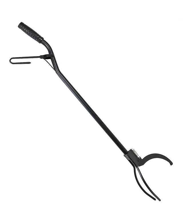 Indoor/Outdoor Fireplace or Fire Pit Heavy-Duty Steel Spring Lever Firewood Log Grabber Tool - 36" - Black