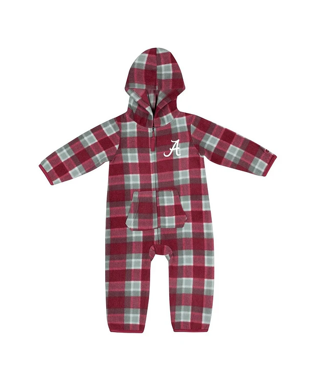 Infant Boys and Girls Colosseum Crimson, Gray Alabama Crimson Tide Farays Plaid Full-Zip Hoodie Jumper