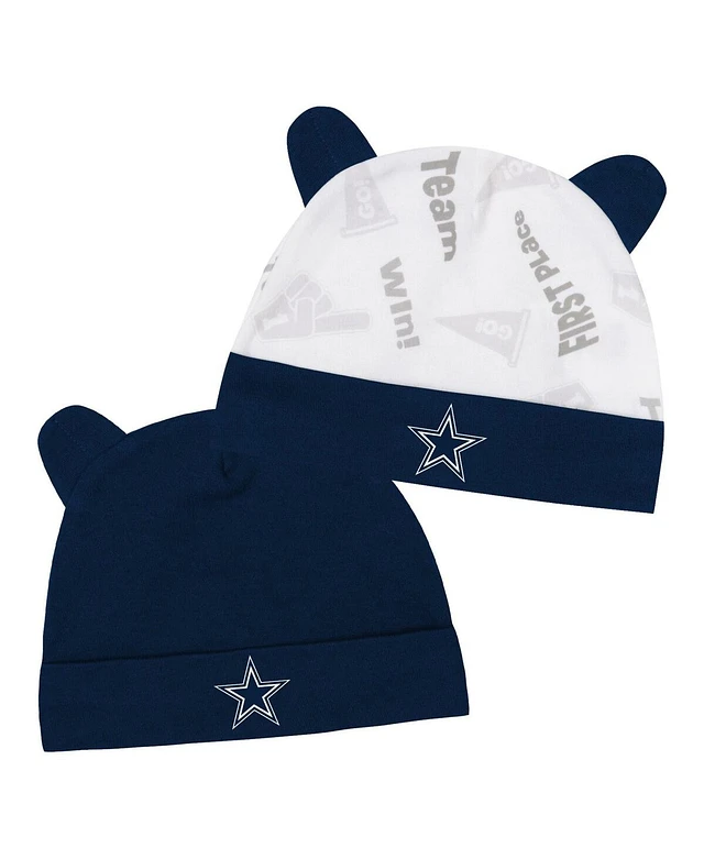 Infant Boys and Girls Navy, White Dallas Cowboys Baby Bear Beanie Set
