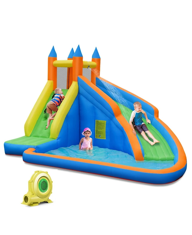 Inflatable Water Slide Kids Bounce House Splash Water Pool with 735W Blower