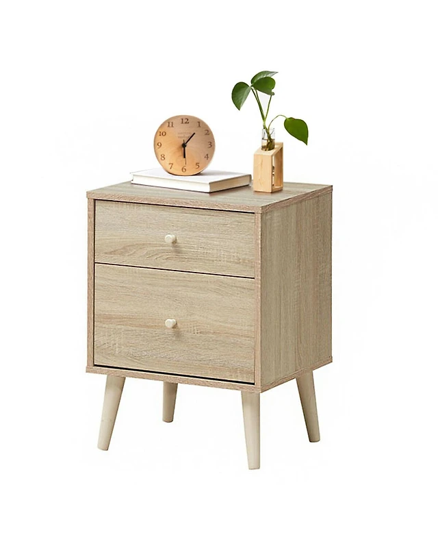 Inolait 2-Drawer Nightstand Beside End Side Table with Rubber Legs