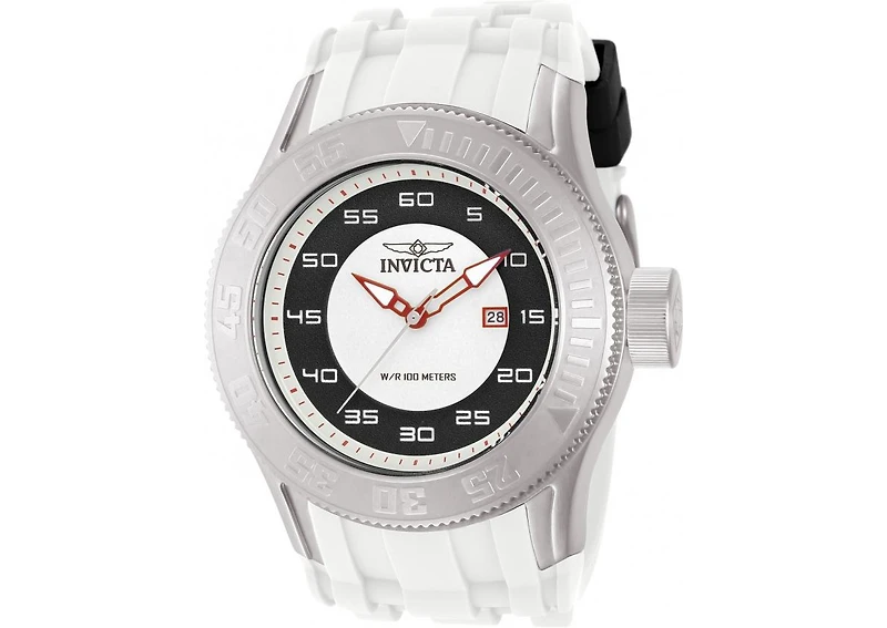 Elevate your style with the Invicta Men's Pro Diver Watch (Model: 11938), a perfect blend of functionality and sophistication. This striking timepiece features a robust 50mm stainless steel case that exudes durability and elegance, complemented by a sleek stainless steel bezel. The watch is designed for the modern man who values both performance and aesthetics, boasting a water resistance of up to 100 meters, making it ideal for aquatic adventures or everyday wear. The black rubber strap, crafted from high-quality silicone, ensures a comfortable fit with a generous length of 220mm, while the white band tone adds a fresh contrast to the bold design. The mineral crystal protects the metal dial, ensuring clarity and resilience against scratches.