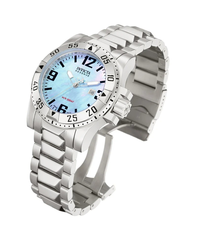 This beautiful Invicta Excursion watch contains a precise Quartz movement in addition to a steel case. Its face displays a platinum, mother of pearl dial protected by a highly resistant Flame Fusion Crystal. This timepiece is completed by a steel, stainless steel band and it offers water resistance of up to 200 m. As a new horizon comes to the fore, intriguing horizons beckon. The Invicta Excursion transforms expectation, setting a wholly new precedent. Appointed with Swiss-made excellence, the Excursion proves to be an enlightened guide for any exploration. Map your course. Building each timepiece for the fierce of heart, Invicta watches are an exemplary demonstration of versatility, setting a precedent for braving the most adventurous of activities.
