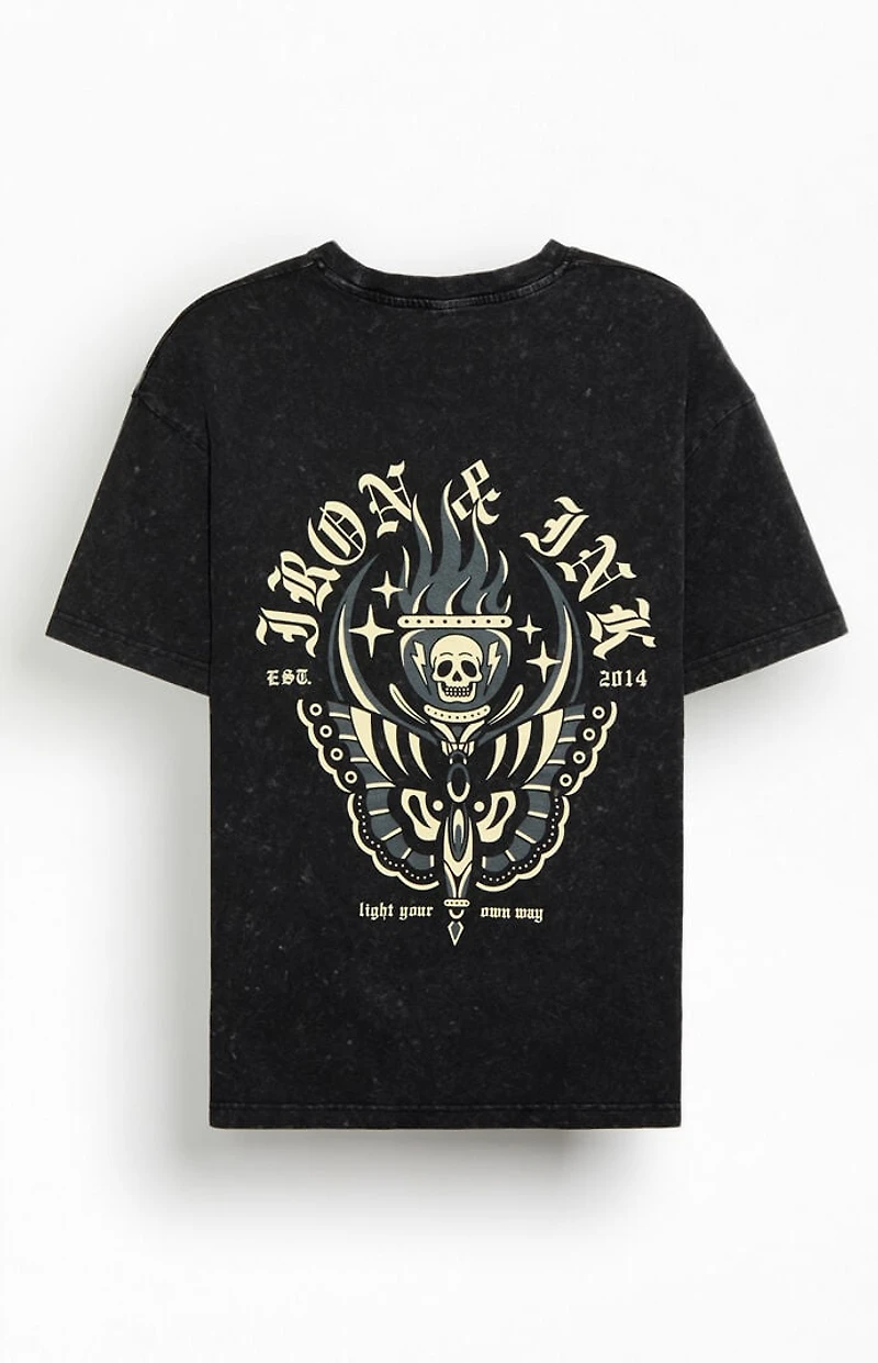 Bring out your cool sense of style with the Light Your Way Boxy Oversized T-Shirt from Iron and Ink. Crafted with a vintage wash fabrication, this tee features short sleeves, a crew neckline and bold graphics printed on the left chest and back.