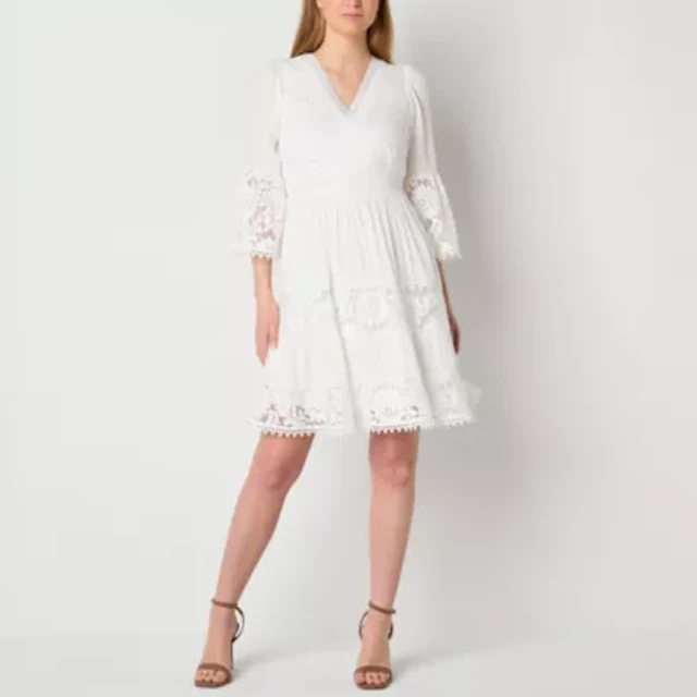 Danny & Nicole Womens 3/4 Sleeve Fit + Flare Dress