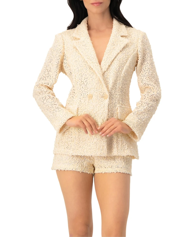 Ivonne Women's Textured Sequin See-Through Blazer with Tailored Silhouette