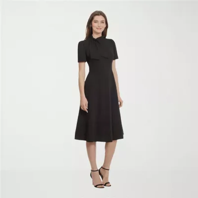 Ivy & Blue Womens Short Sleeve Midi Fit + Flare Dress
