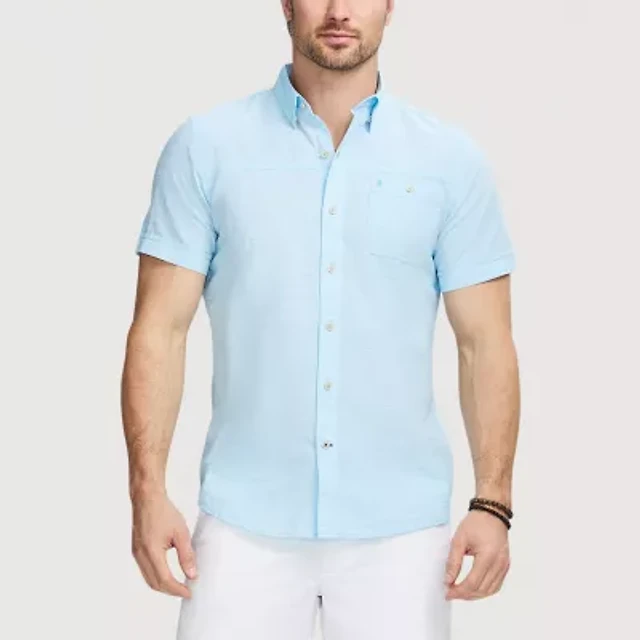 IZOD Dockside Chambray Mens Short Sleeve Regular Fit Stretch Fabric Button-Down Shirt