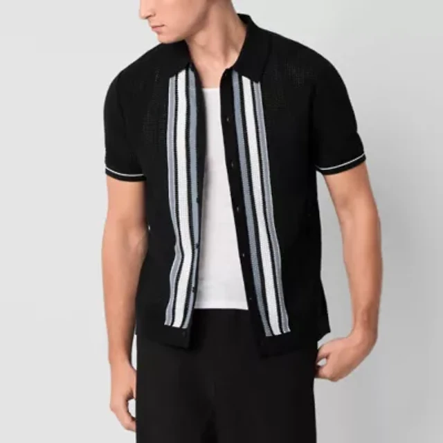 J. Ferrar Button-Front Mens Short Sleeve Pullover Sweater