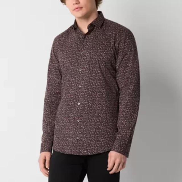J. Ferrar Mens Long Sleeve Slim Fit Stretch Fabric Wrinkle Free Button-Down Shirt