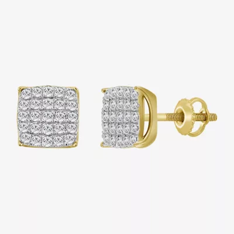 (J / I3) 1 CT. T.W. Natural White Diamond 10K Gold 10mm Stud Earrings