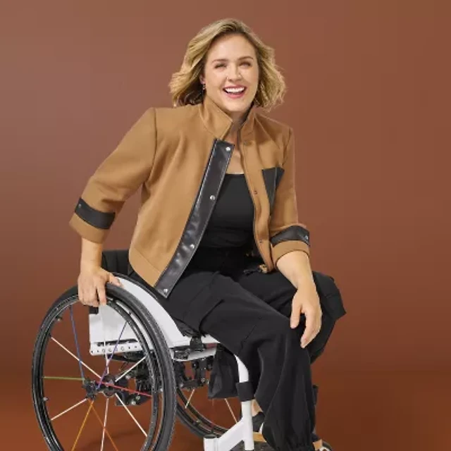 Jamey Perry x JCPenney Womens Adaptive Faux Leather-Trim Cropped Jacket