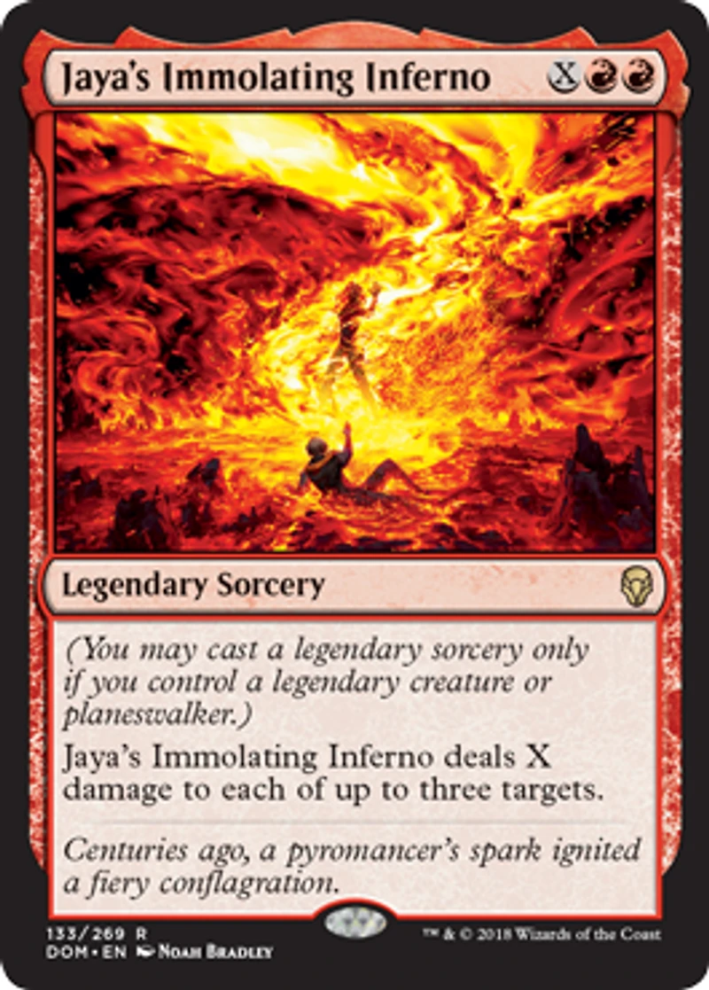 Jaya's Immolating Inferno deals X damage to each of up to three targets.