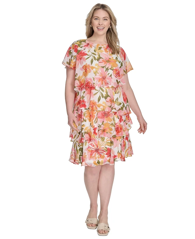 Jessica Howard Plus Size Floral-Print Tiered Shift Dress