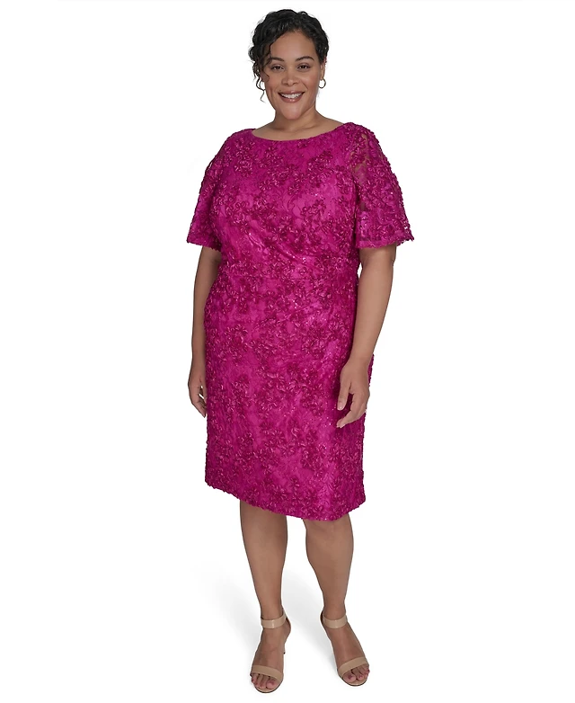 Jessica Howard Plus Size Soutache Lace Flutter-Sleeve Dress