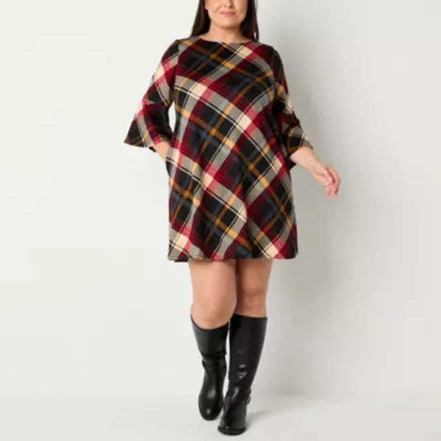 Jessica Howard Womens Plus 3/4 Sleeve Plaid Shift Dress