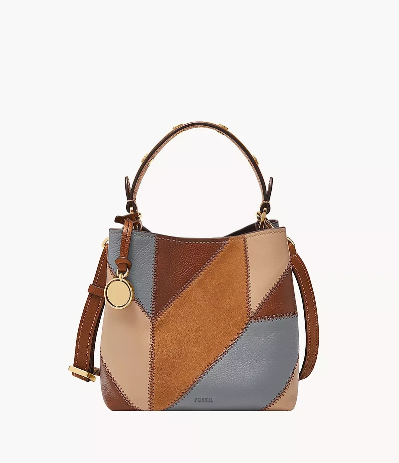 Our lovable Jessie Bucket highlights our Americana heritage with charming zig-zag stitching and rich leather patchwork. The functional crossbody silhouette is designed for ease of wear, with an adjustable, detachable strap that suits a variety of carrying styles. Despite her small size, this versatile bucket can carry all that you need to go from day into night.Fossil leather products support responsible manufacturing via the Leather Working Group.