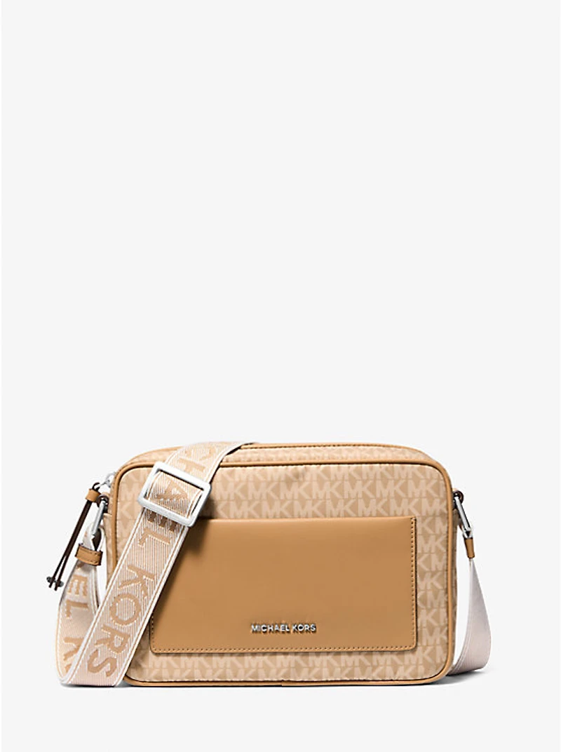 Jet Set Large Signature Logo Print Woven Crossbody Bag