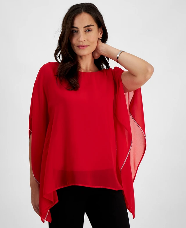 Jm Collection Petite Embellished Chiffon Poncho Top, Created for Macy's