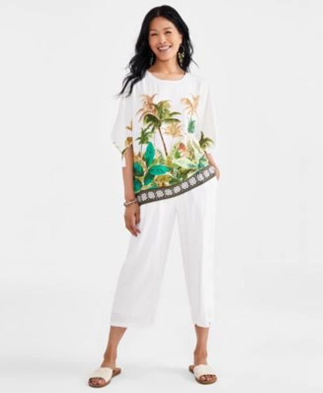 Jm Collection Womens Linen Blend Palm Print Tunic Top Cropped Pants Created For Macys