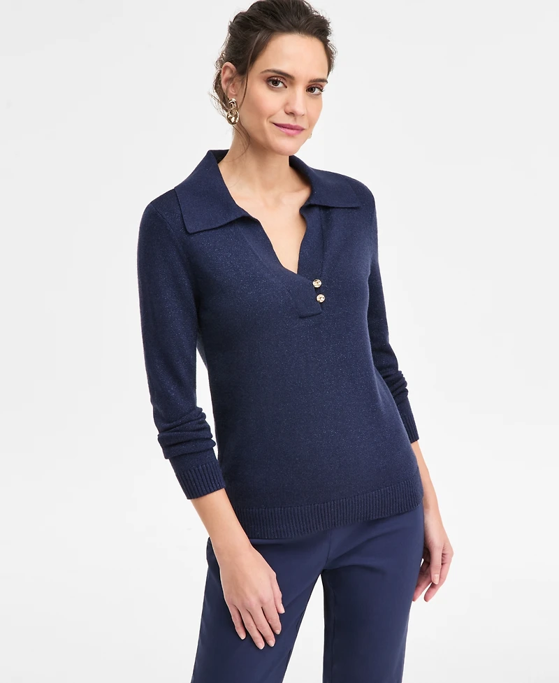 Jm Collection Women's Long-Sleeve Johnny-Collar Lurex Sweater, Macy's Exclusive