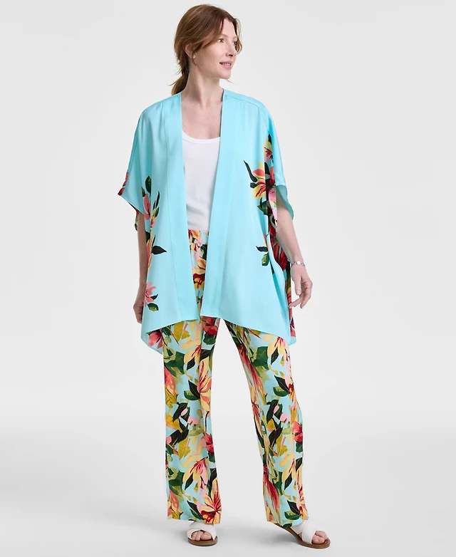 Jm Collection Women's Printed Satin Open-Front Kimono Top, Exclusively at Macy's