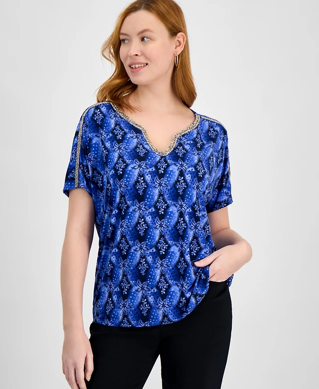 Jm Collection Women's Printed Scoop-Neck 3/4-Sleeve Top, Exclusively at Macy's